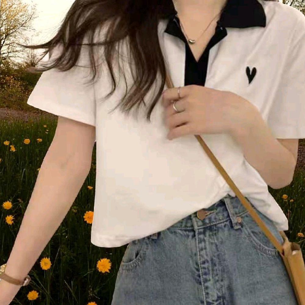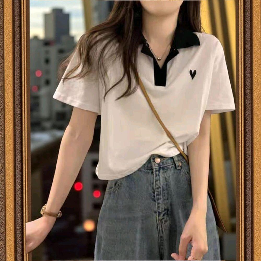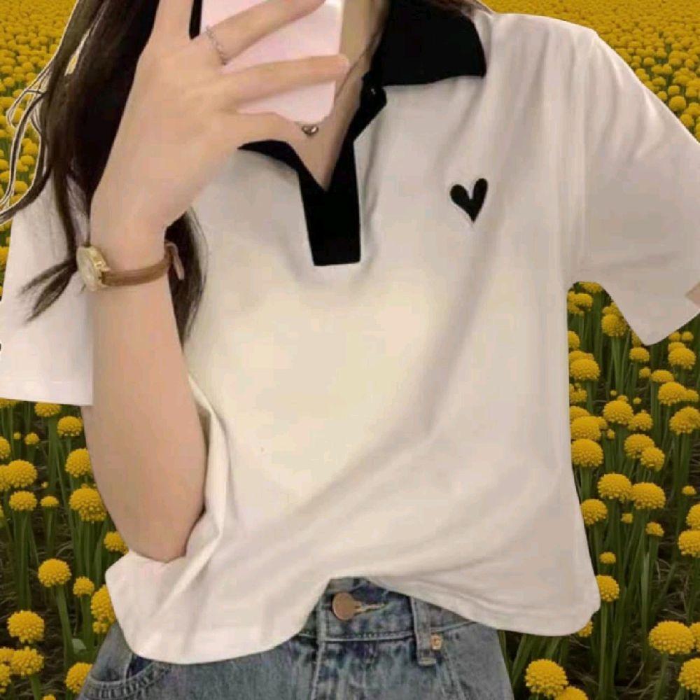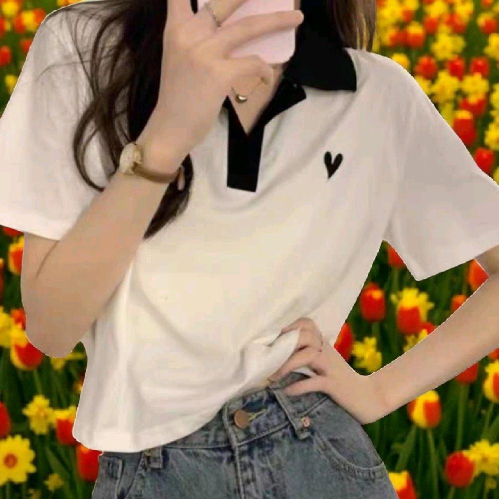 (SM-0053) Shi Meng Fashion Women Short Sleeve Collar Casual Top | Oversized Korean Style Blouse Daily Wear