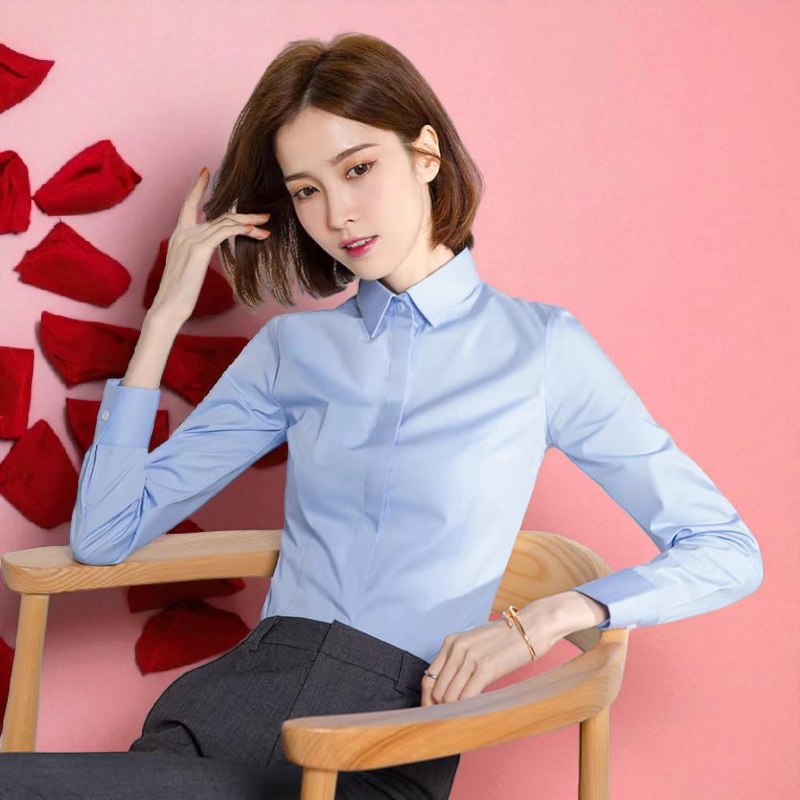 Women Fashion Collar Long Sleeve Button Office Formal Wear Top