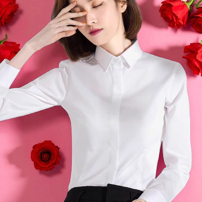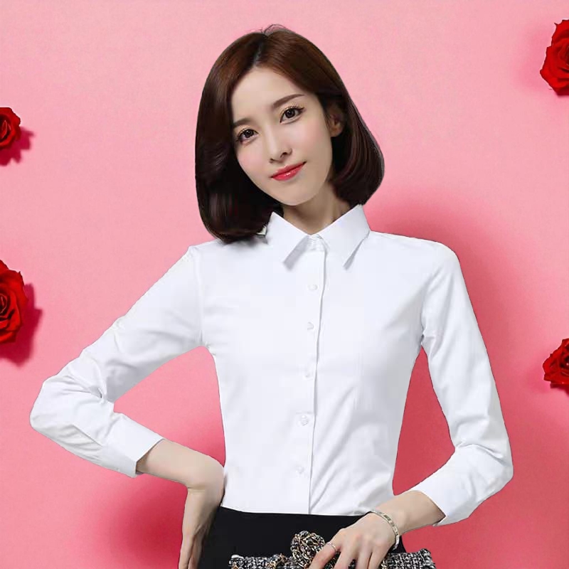 Women Fashion Collar Long Sleeve Button Office Formal Wear Top