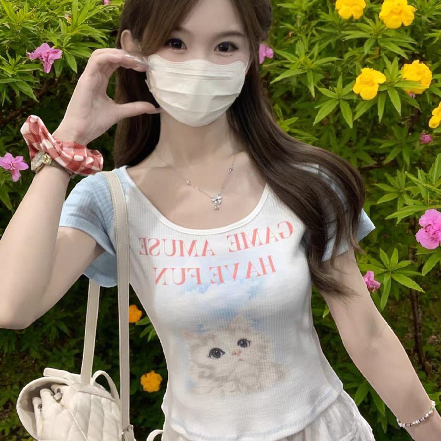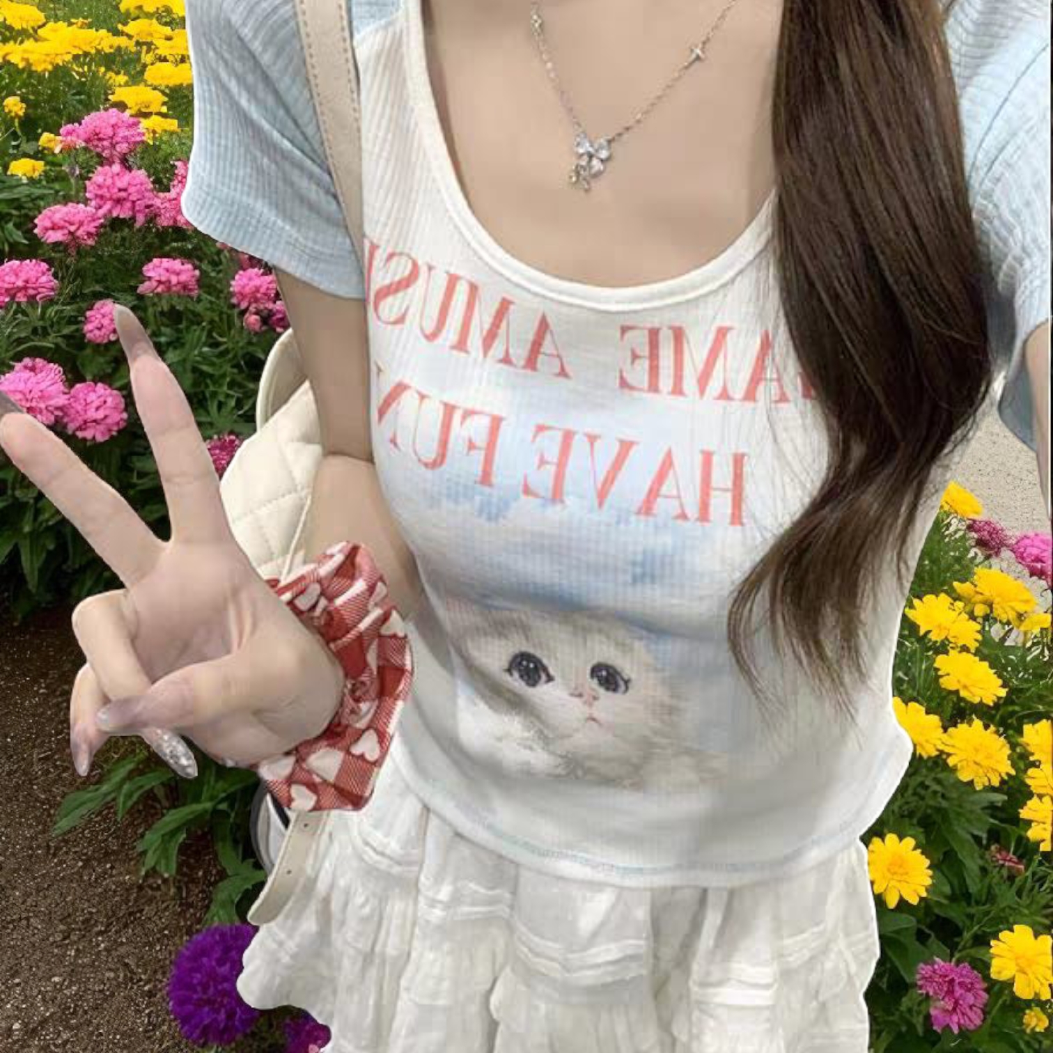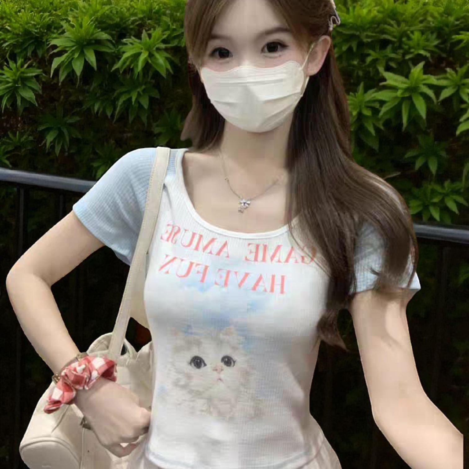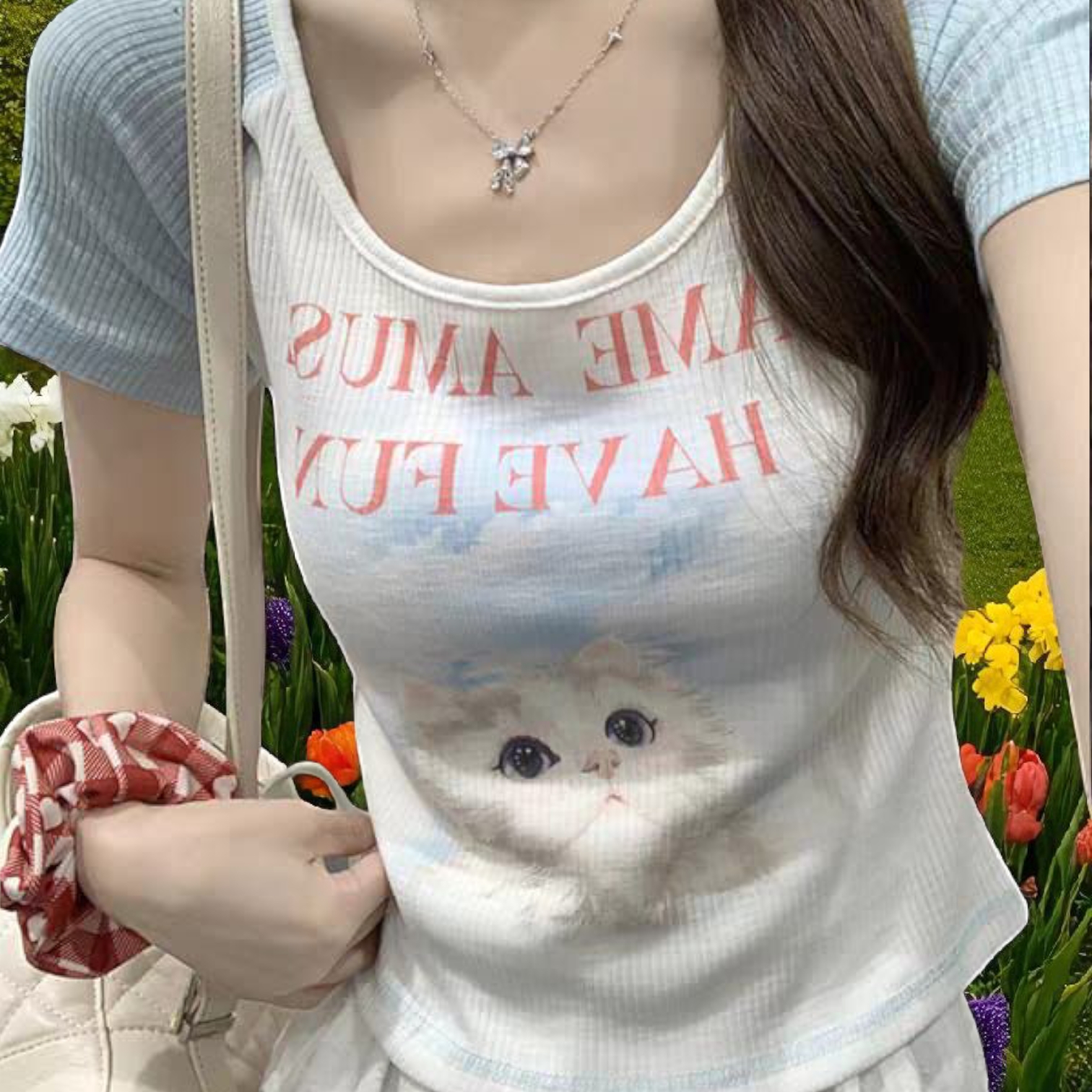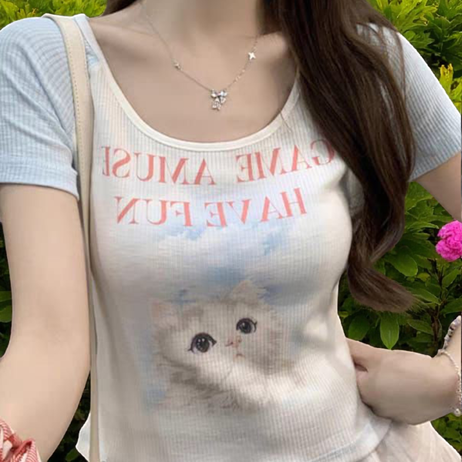 Women’s Round Neck Short Sleeve Cat Top