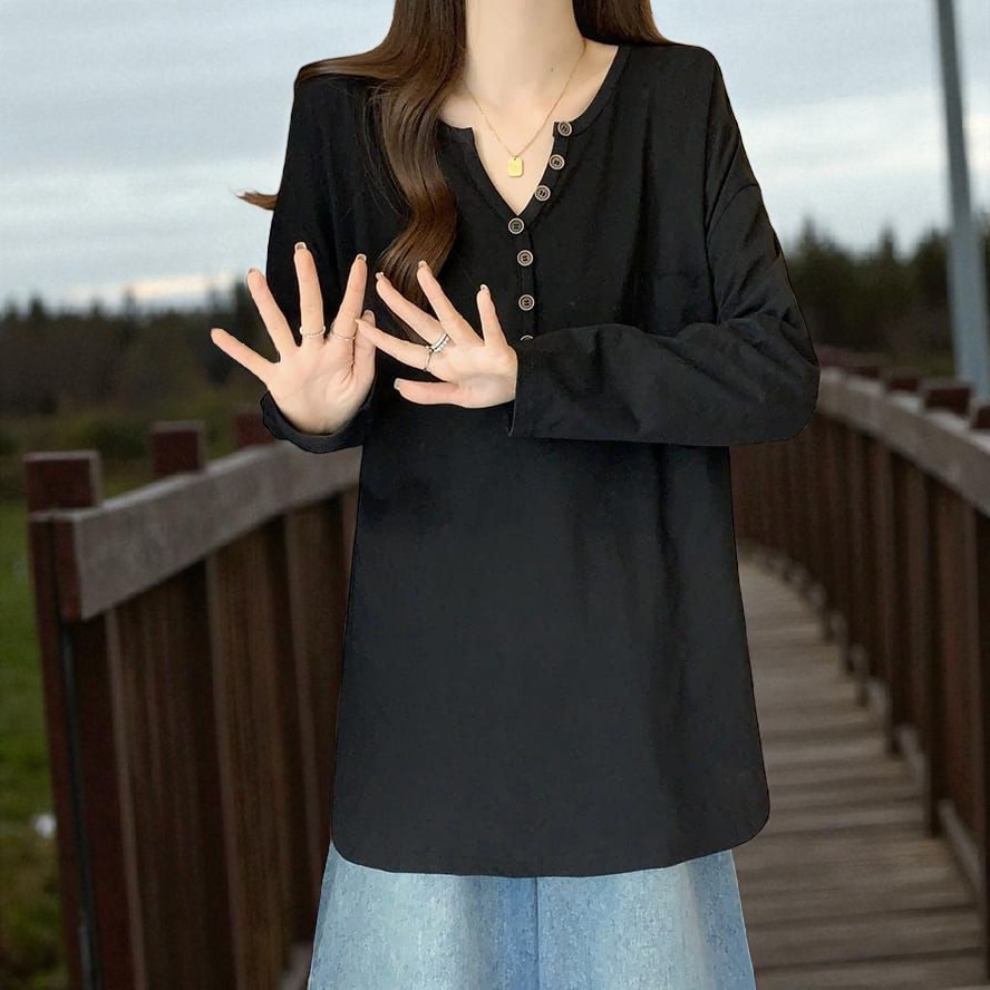 Women’s V Neck Long Sleeve Button Down Top