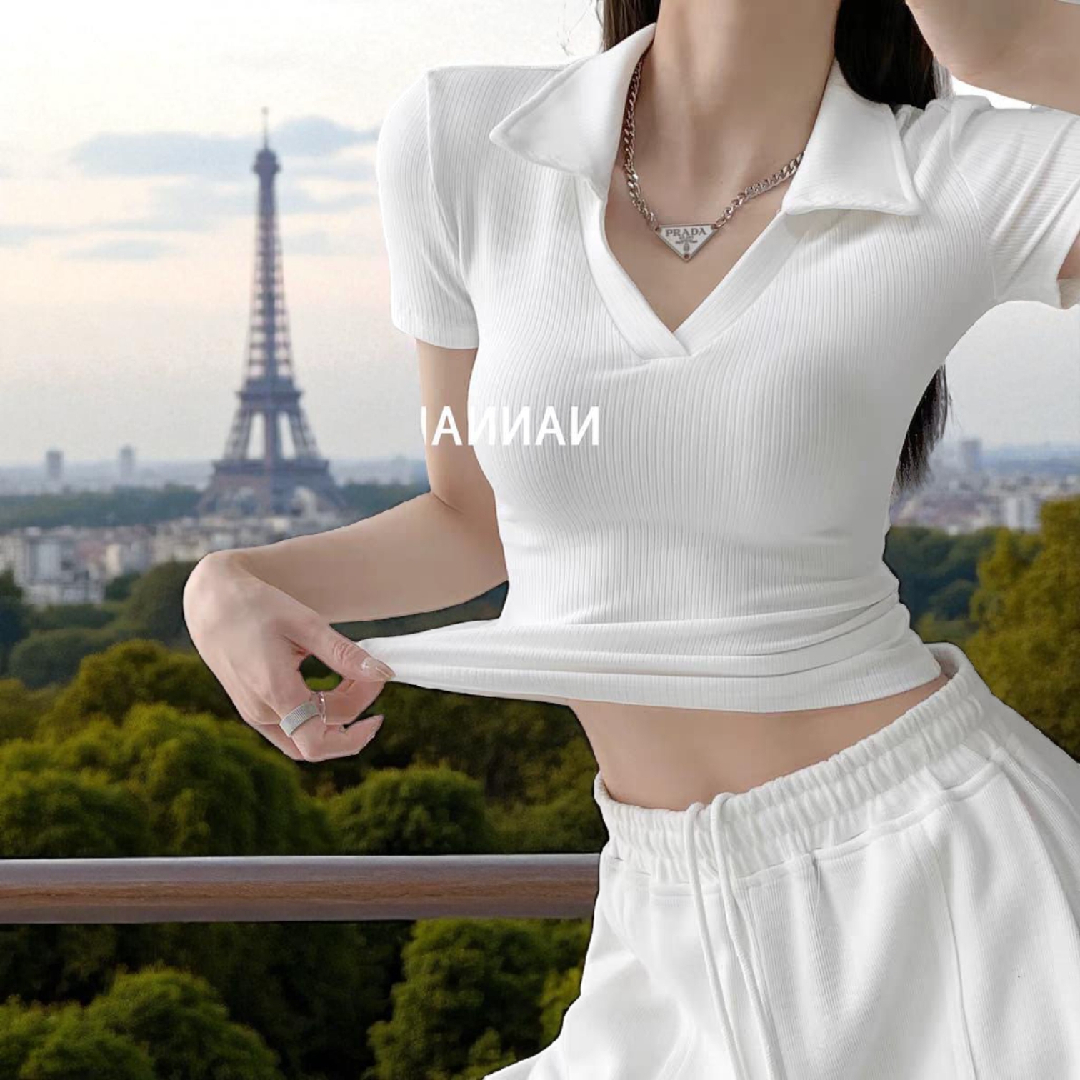 (SM-0015) Women’s V Neck Short Sleeve Collar Top